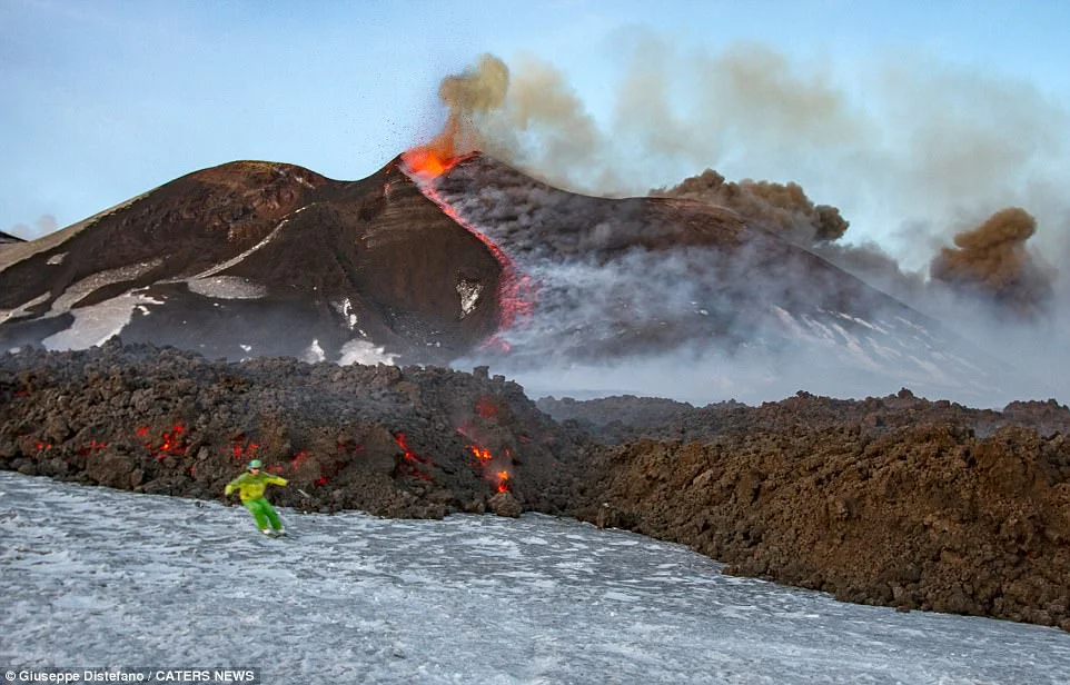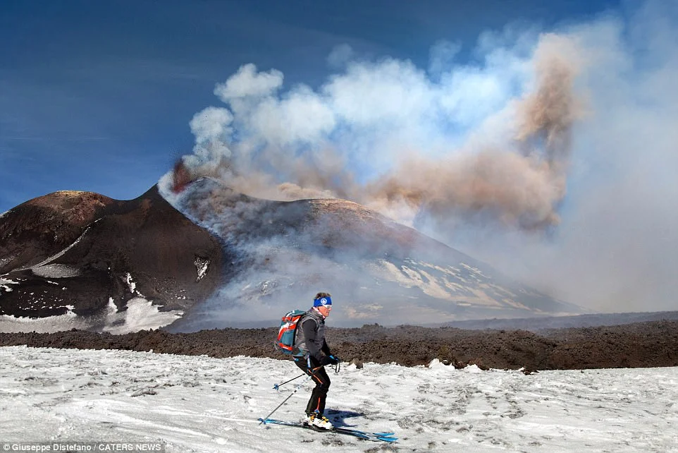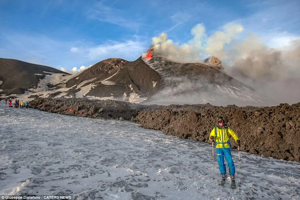 „Изглежда опасно, но ние сме били на ски на този вулкан и преди“, успокои Джузепе.