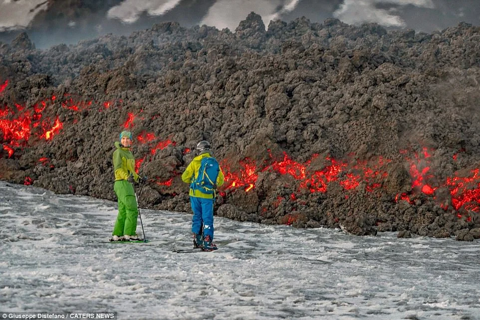 „Може да бъде и рисковано, ако не разполагате с пълен контрол над ските си. Лавата течеше по време на спускането и ние дори отидохме да видим източника й“, обясни още Джузепе.