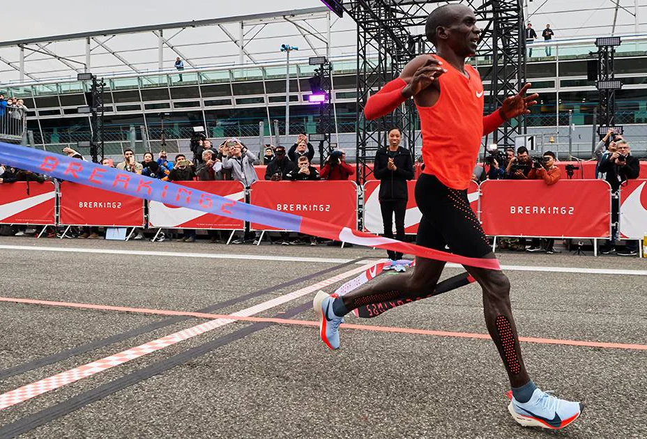 През декември Nike си постави за цел постигането на световен рекорд от два часа в пробягването на маратон, стартирайки проекта Breaking2. Така компанията ангажира трима от най-добрите бегачи в света – Елиуд Кипчоге, Лелиса Десиса и Зерсенай Тадесе (и лица на бранда) и широк екип от различни специалисти – биомеханици, дизайнери, инженери, диетолози, психолози, треньори, за да изпробва – въз основа на взаимна работа и иновативни идеи, границите на възможното.