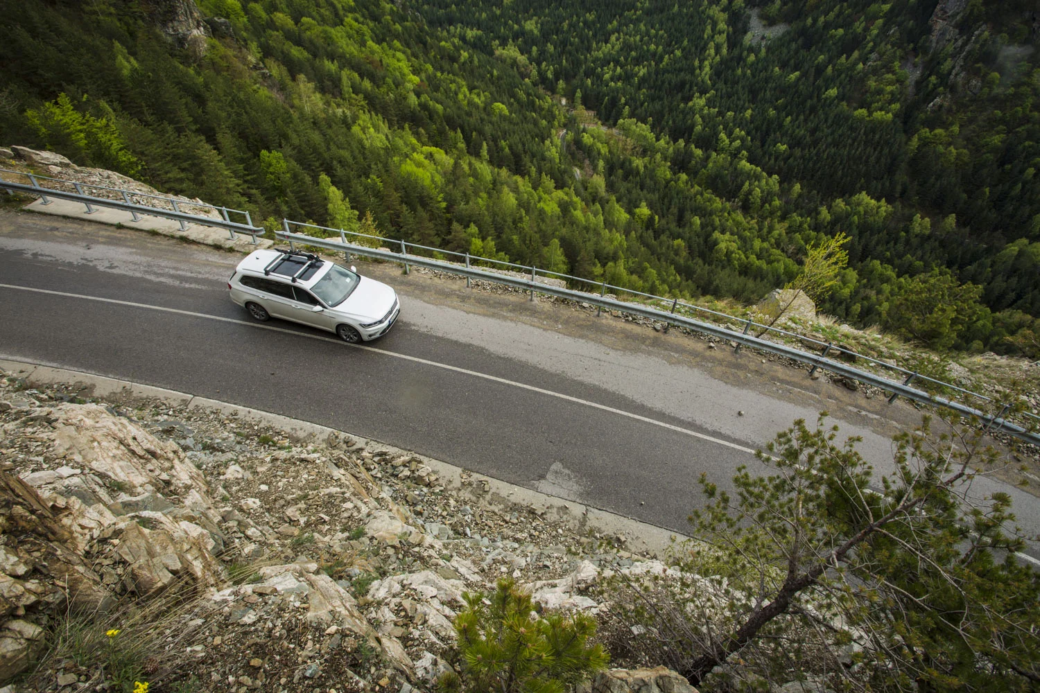 Дъждът си вали, но това не е предпоставка за намаляване на видимостта. Благодарение на четирите камери с един поглед се обхваща цялата зона около автомобила, а на infotainment екрана се появява изображение на самия автомобила, погледнат от „птичи поглед“ в реалната обстановка. Системата се нарича Area View и абсолютно нищо не може да я възпрепятства да покаже всичко, което се случва около колата дори при ограничена видимост. Освен в градския трафик, се оказва, че системата е много полезна и по тесни черни пътища с „дебнещи“ препятствия от всички страни, какъвто се оказва случая на връщане от боулдърите в посока Рилски манастир.