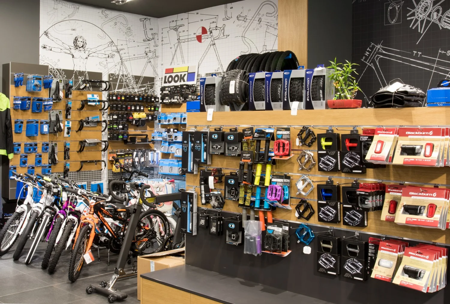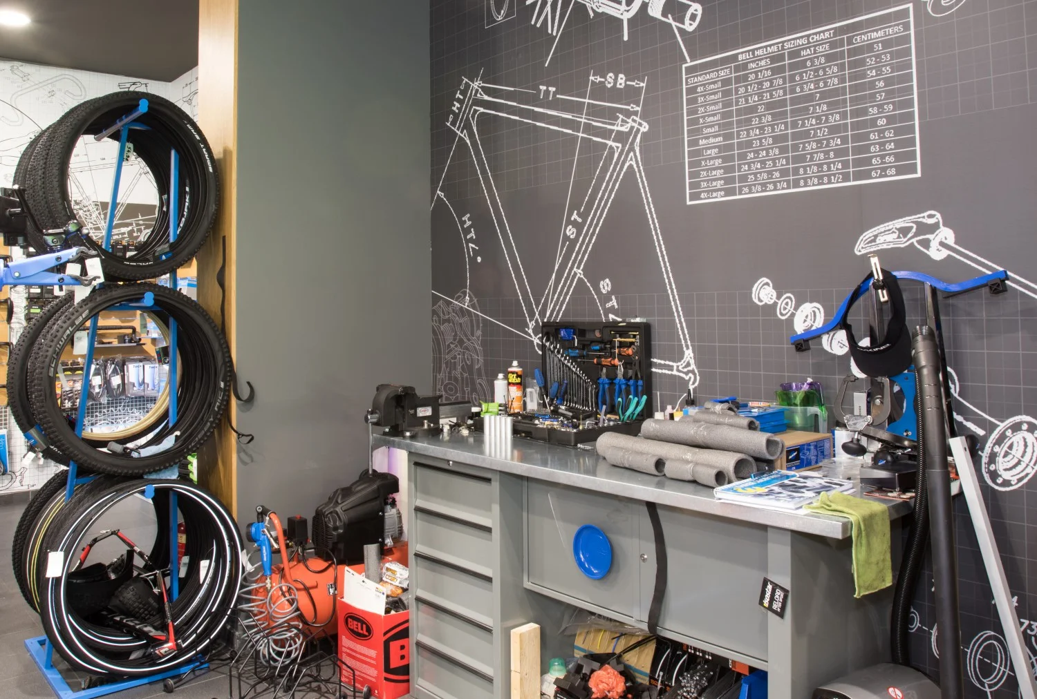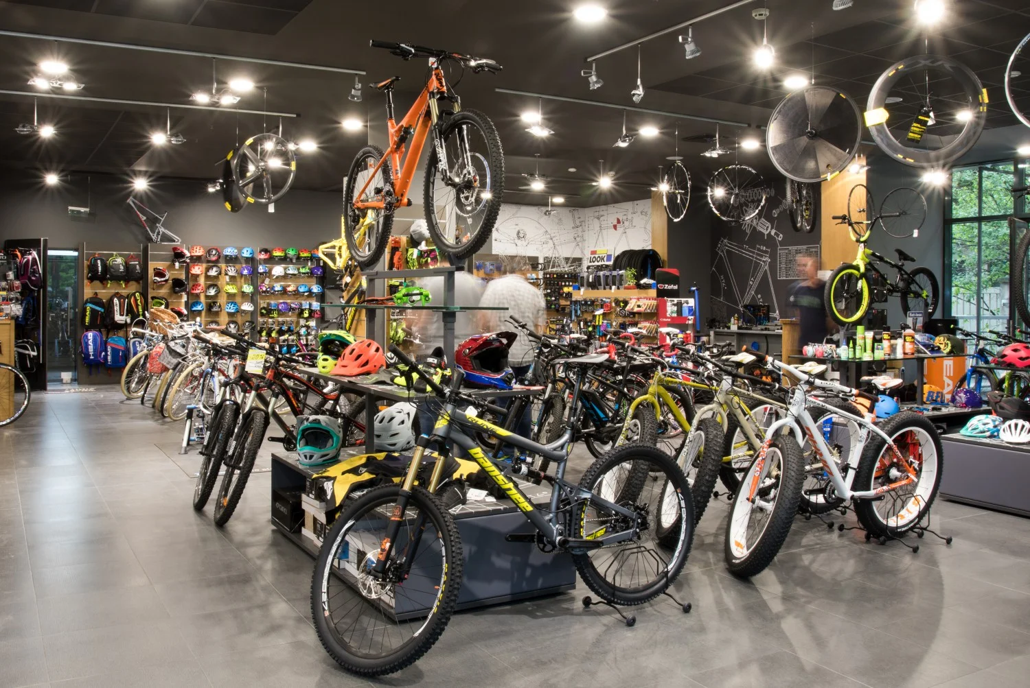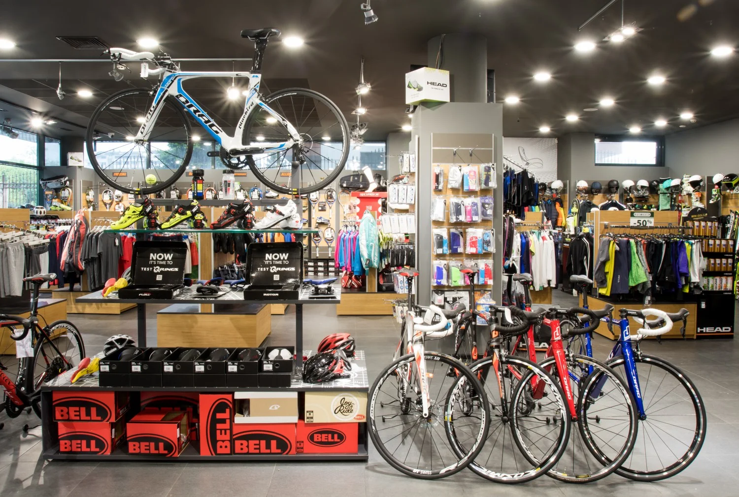 Огромно впечатление прави велосипедния парк и велооборудването. По-голямата част от пространството е заето именно от велосипеди, вело -компоненти и всякакви аксесоари.
