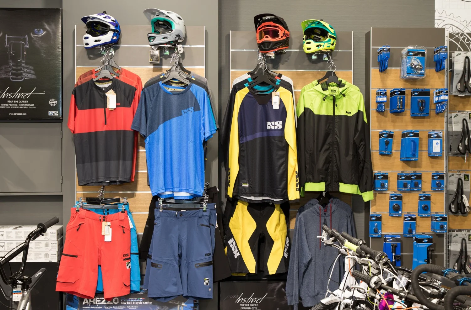 Голям избор на педали на Look, Crank brothers. Гюделини и седалки Fizik. Широка гама кормила, колчета и лапи на Pro и Easton. Висок клас седалки на Fizik, Selle Royal, разнообразие от каски и шлемове на Giro и Bell.
