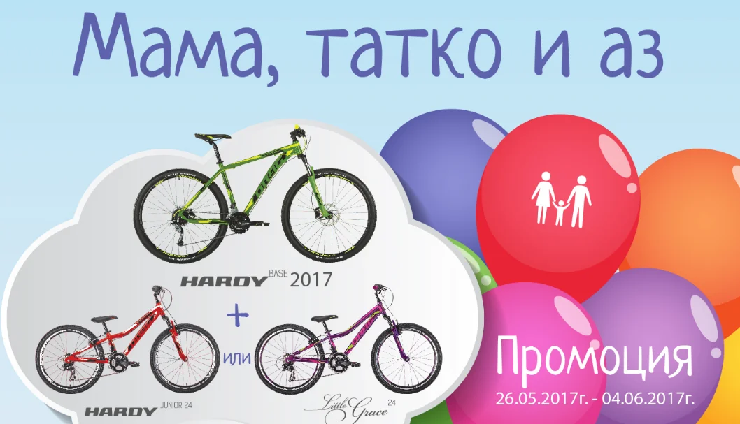 Така например, детският велосипед Hardy JR 24″ или Little Grace 24″ може да бъде закупен в комбинация с Hardy Base 2017 само за 1099 лв.