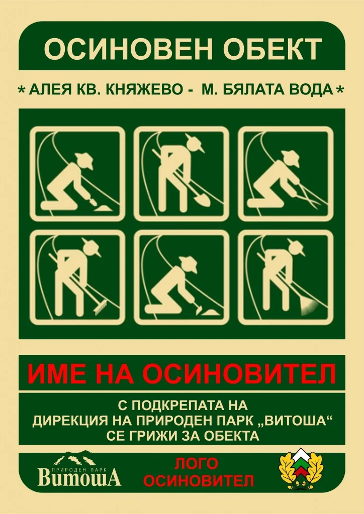 Веднъж сключил Споразумение за партньорство, осиновителят е длъжен да почиства и поддържа с доброволен труд и собствени материали избрания обект, както и да съгласува всяка своя дейност, свързана с поддръжка или облагородяване на обекта с Дирекция Природен парк „Витоша“. Той може да постави на видно място табела, която да обозначава кой именно се грижи за обекта, а при писмено съгласие от негова страна Дирекцията има право да рекламира и популяризира дейността му. ВИЖ ПОВЕЧЕ: Пълното Споразумение, което се подписва от двете страни при желание за осиновяване.