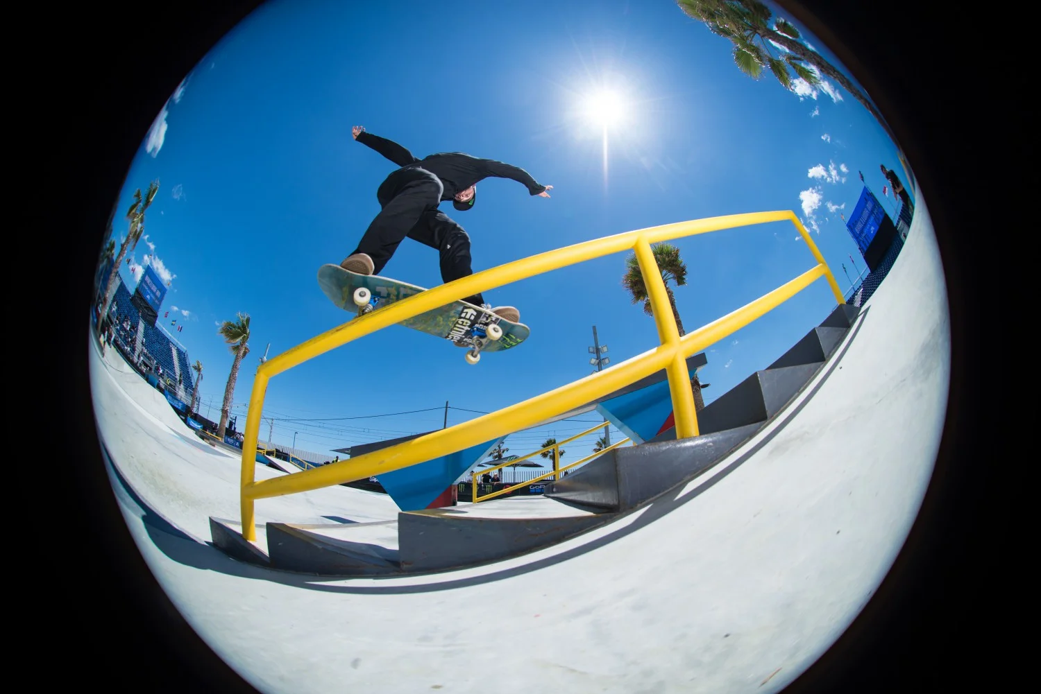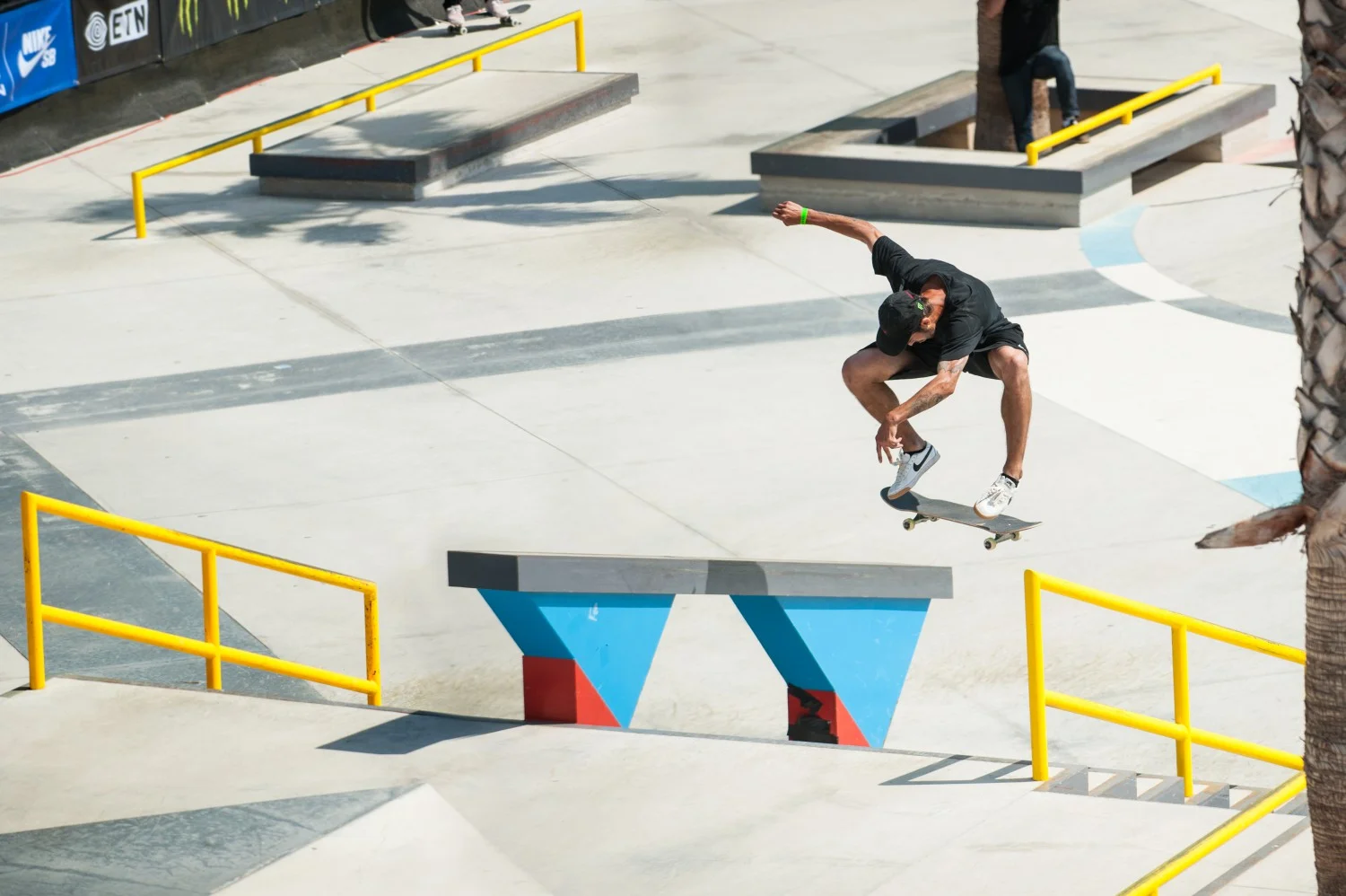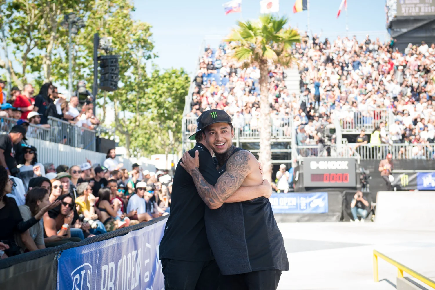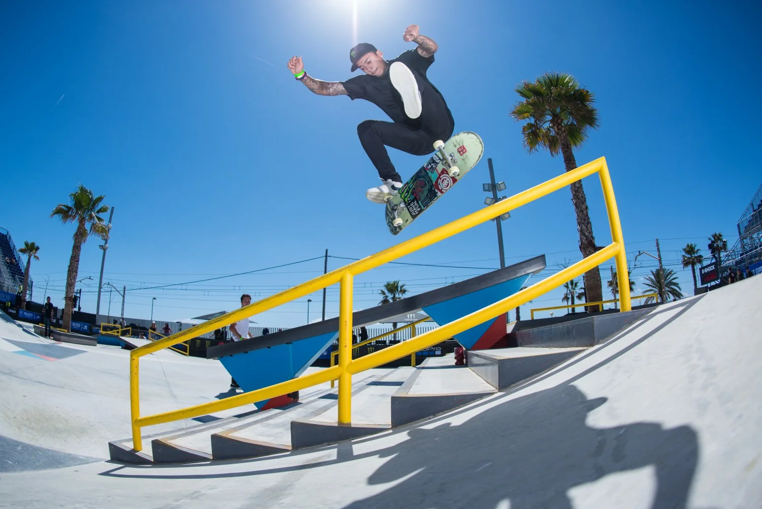 Титаничните трикове включваха bigspin front blunt на рейла за канадеца Matt Berger (Flip Skateboards, Etnies, Monster Energy, Thunder Trucks), което му спечели 8.3 точки. Switch bigflip front board на рейла спечели 9.2 на Shane O’Neal (Nike SB, Primitive Skatebaords, Thunder Trucks). Бразилецът Kelvin Hoefler (Ricta Wheels, Qix International, Diamond Supply Co, G-shock) направи halfcab noseslide to back tail на ръба, което пък му спечели 8.8. Nyjah Huston (Element Skateboard, Monster Energy, Nike SB) избухна с blindside fakie flip над една от пейките, което съдиите наградиха с 8.8. Tiago Lemos (DC shoes, Boulevard Skateboards, Independent Trucks) пък направи нечовешки nollie inward heelflip back lip на рейла, което му даде 9.4, като това беше най-високо награденият трик. Yuto Horigome (Nike SB, Blind Skateboards) пък направи nollie 270 noseslide на големия ръб, което му отсъди 8.8 и по този начин го издигна на трето място за първото му SLS състезание.