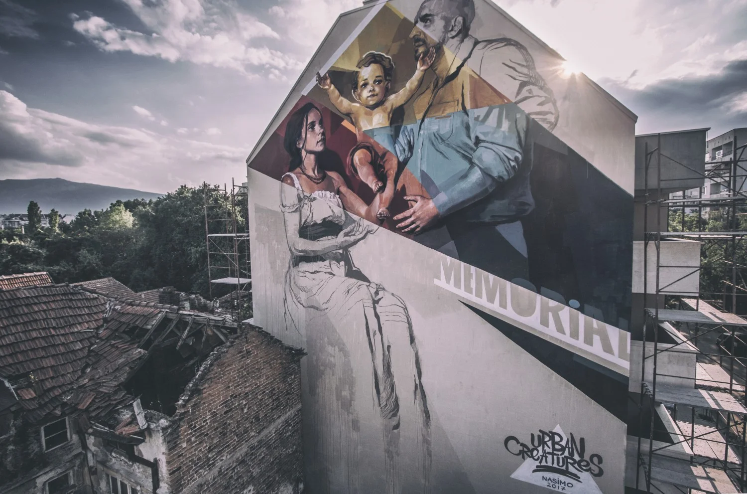 През 2017 Urban Creatures се завръща, а тази година инициативите ще продължат в по-голям период – до края на годината. Първата творба, в чиято магия вече можем да се потопим, е готова и се намира върху фасадата на новопостроена сграда в „Хаджи Димитър“, улица „Доктор Албърт Лонг“ №10. Тя е озаглавена Memorial и е плод на съвместната работа между Nasimo и целия екип на проекта. Работата по нея завършва на 28-и юни – навръх рождения ден на Nasimo.