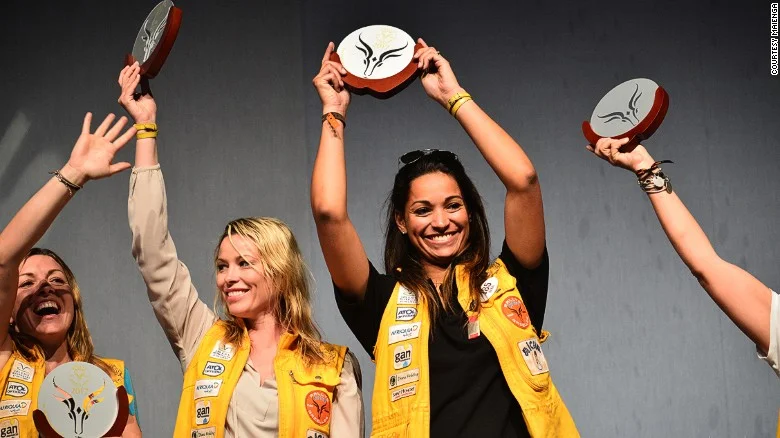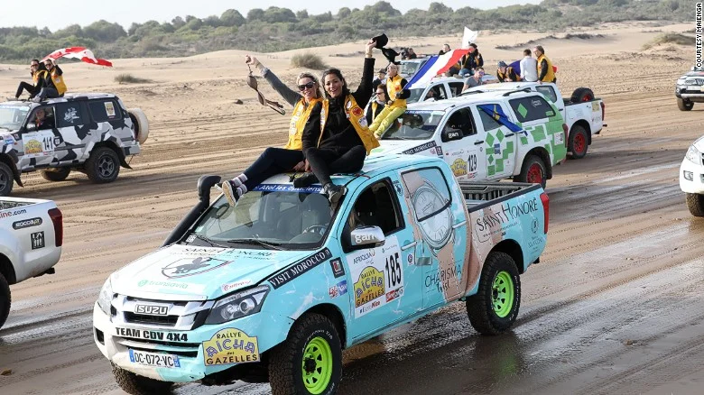 Чаплин – актриса, предприемач и внучка на краля на киното Чарли Чаплин, е била новобранец навигатор при Синди Фабре, опитна „Газела“ и бивша Мис Франция. Състезавайки се в осем етапа по 19 часа на ден, ралито не е за хора със слаби сърца, казва спечелилата първото място.