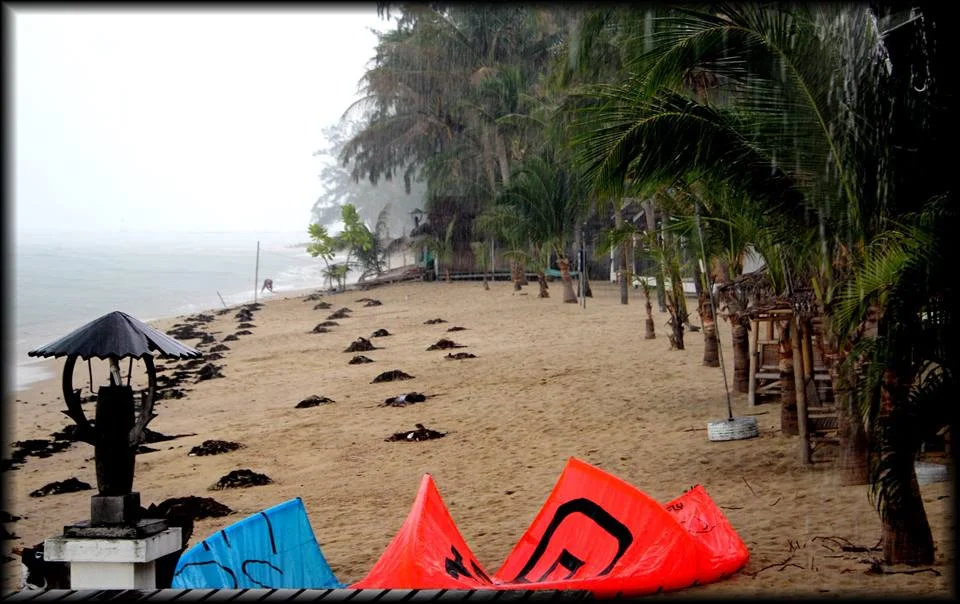 Има много какво да се прави, но задуха ли, кайтът винаги е приоритет. В Тайланд се учиш на много търпение, тъй като най-силният вятър отива във Виетнам, а Ко Панган остава някак встрани от въздушния поток. Все пак за 30 дни там, успях да направя около 25 сесии с крила от 8 до 19 квадрата като размер. Голям смях бе да напомпам дракон 19-ката, която е част от екипировката на едно от малкото на брой училища на острова. Предимно духа лек вятър и често се ползват фойл крила и такива с голяма квадратура, но дните с истински вятър винаги бяха стабилни и често напомняха на това, което сме свикнали да виждаме в Турция, дори карах с 8-ца. За онези ширини е като ден за празник и черпене такава сила на вятъра. Водата е равна и е подходяща за учене на нови фрийстайл трикове, вдигане на ниво и техника при слаб вятър. Самото място е доста предизвикателно, защото кайтът се вдига измежду бунгала и палми, често вятърът пада като че ли някой е затворил вратата и се налага да излизаш на self rescue или да се върнеш пеша като най-голямото бебе. Но това там си е прието и на никой не му дреме за твоя така наречен „walk of shame“. Успях да преподам и някой друг урок, а да преподаваш без да духа си е чиста магия. Често задухва леко, помпаш и осъзнаваш, че само се излагаш, събираш кайта и продължаваш да дебнеш. Там се учиш на търпение. Но влезеш ли да покараш, South China Sea те дарява с много енергия, плуват кокосови орехи около теб и виждаш дъното в повечето от случаите.