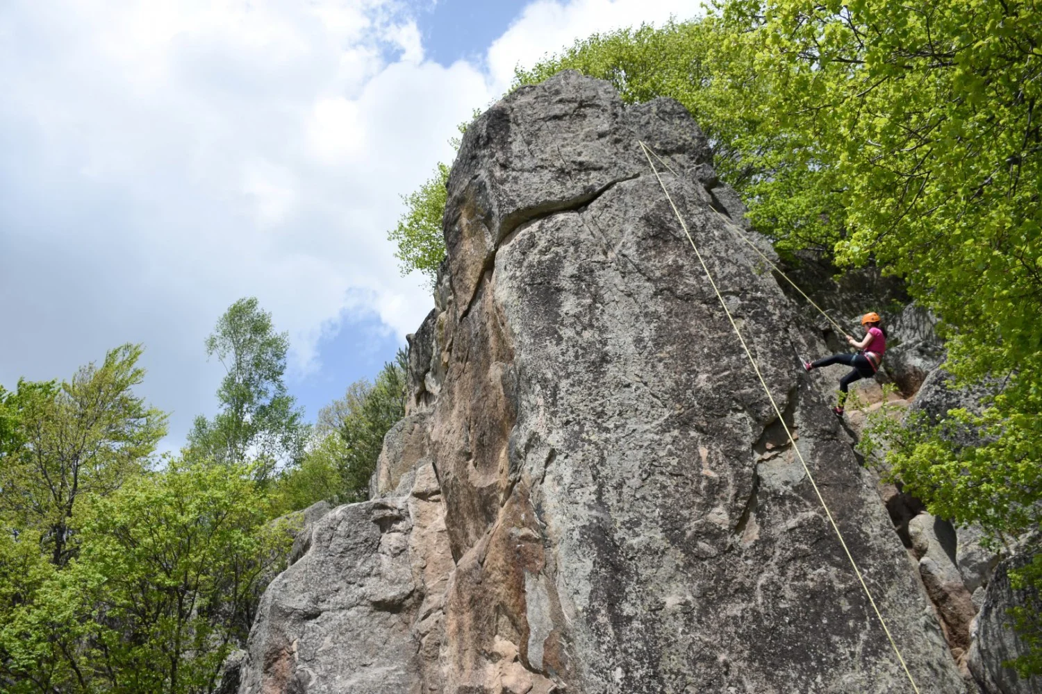 След това направихме яки амулети от глина и природни материали, разгадахме как да повдигнем 150-килограмова скала със система от въжета и една джаджа, дето се ползва в скалното катерене. Отлагахме мисията „Тролей“, защото видях от далече колко е високо и не ми се мислеше как ще се спусна.