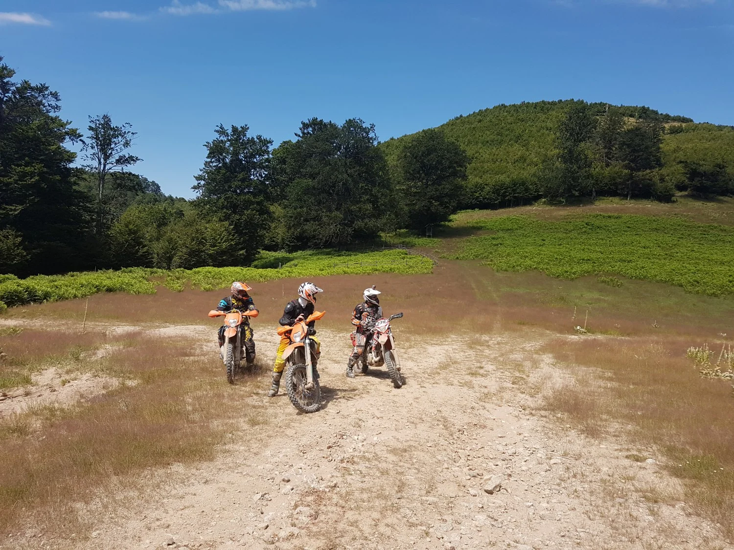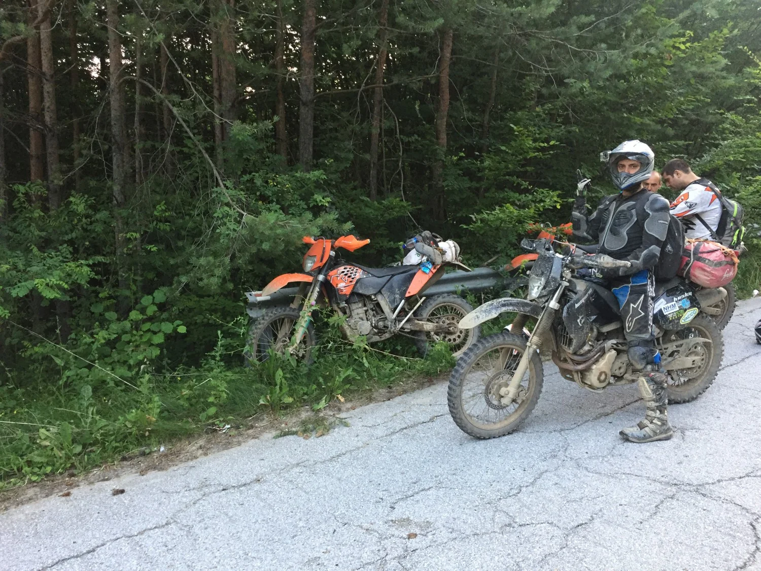„До връх Ком се качихме по пътя, който си съществува, а след това до хижа Тръстеная сме карали по класическия маршрут, който е смесен – пътечка и път. След хижа Чавдар се качихме на билото, където имаше доста хора и затова слязохме на асфалтовия път, който съществува, откакто горе има военна база. Този път стига до хижа Мургана, откъдето ние се пуснахме към Етрополе. От Етрополе, пък започва пътят, който се кара от джипове, по който се спуснахме до Златица. От Златица използвахме бус, за да се придвижим до Паниците. Причината да прескочим почти целия Централен Балкан е именно защото сме потърсили разрешение преди това и сме се съобразили с разпоредбите на Дирекцията. От там ни отговориха, че няма как да ни пуснат да преминем в този район от парка, а ако въпреки всичко решим да минем, ще ни спрат и ще начислят по една солидна глоба на всеки от нас. Разбира се, че се съобразихме и в частта до Паниците не сме карали моторите си.“