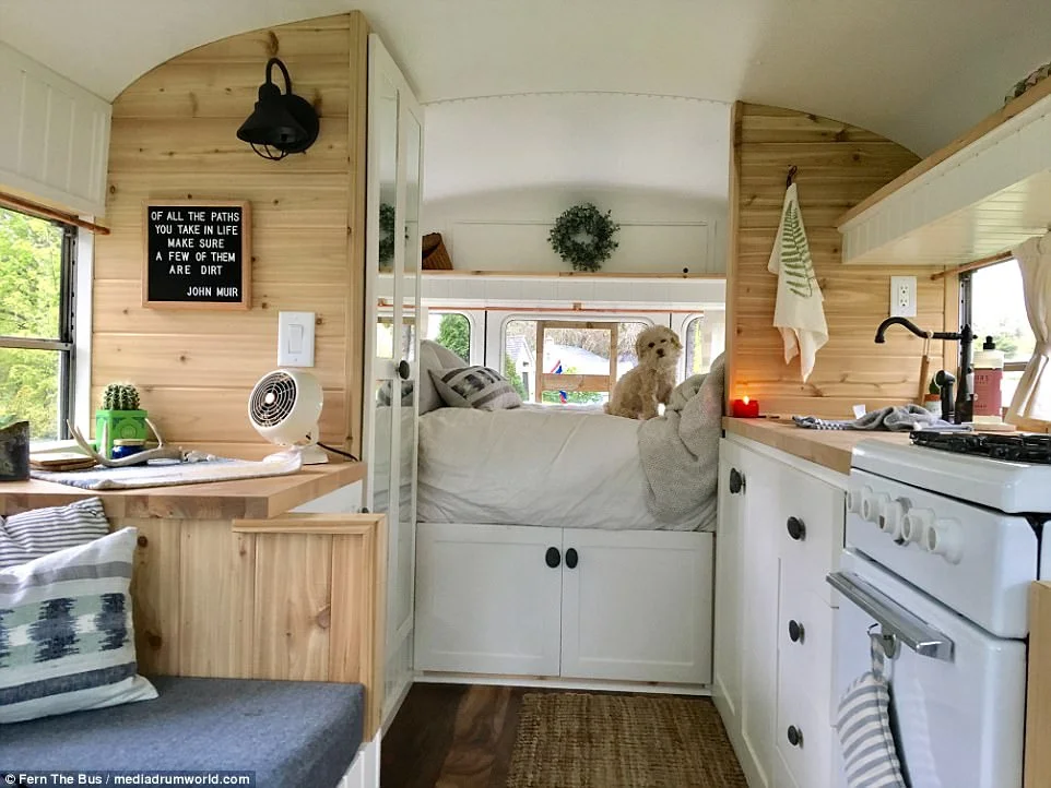 Снимките, които често предизвикват завист, показват как те са махнали седалките на произведен през 1992 година автобус и го превръщат във фантастично функционален кемпер.