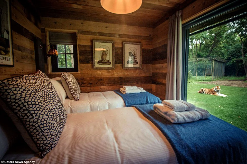 Уникалният хотел в Порт Лимп в Кент дава възможност на семействата да се насладят на изключителната възможност да живеят и спят обкръжени от тигрите.