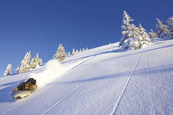 Оприличават го на бодиборд за сняг или надуваема шейна – това е едно от най-новите екстремни изобретения за сняг – еърборд. Изработен от високотехнологични материали, еърбордът е едновременно лек, ултраманеврен и изключително издръжлив. А това са особено необходими качества, предвид че скоростта, която може да достигнете при спускане може да надвиши 100 км/ч – всъщност, рекордът е забележителните 147 км/ч! Звучи направо страховито, и почти самоубийствено да летиш с подобна скорост по снежен склон, лежейки по корем с главата напред. Но всъщност не е. За разлика от обикновените шейни, еърбордът може да бъде управляван посредством две пластмасови дръжки при носа му, а скоростта му да бъде контролирана чрез движенията на тялото и изместване центъра на тежестта. Спирането става като завъртиш еърборда на 90º спрямо посоката на движение. Разбира се, каската е повече от задължителна. Като цяло няма нужда от повече екипировка и се учи сравнително бързо и лесно – в общи линии, нужен ви е един час под наблюдението на инструктор, и вече сте готови за спускане.