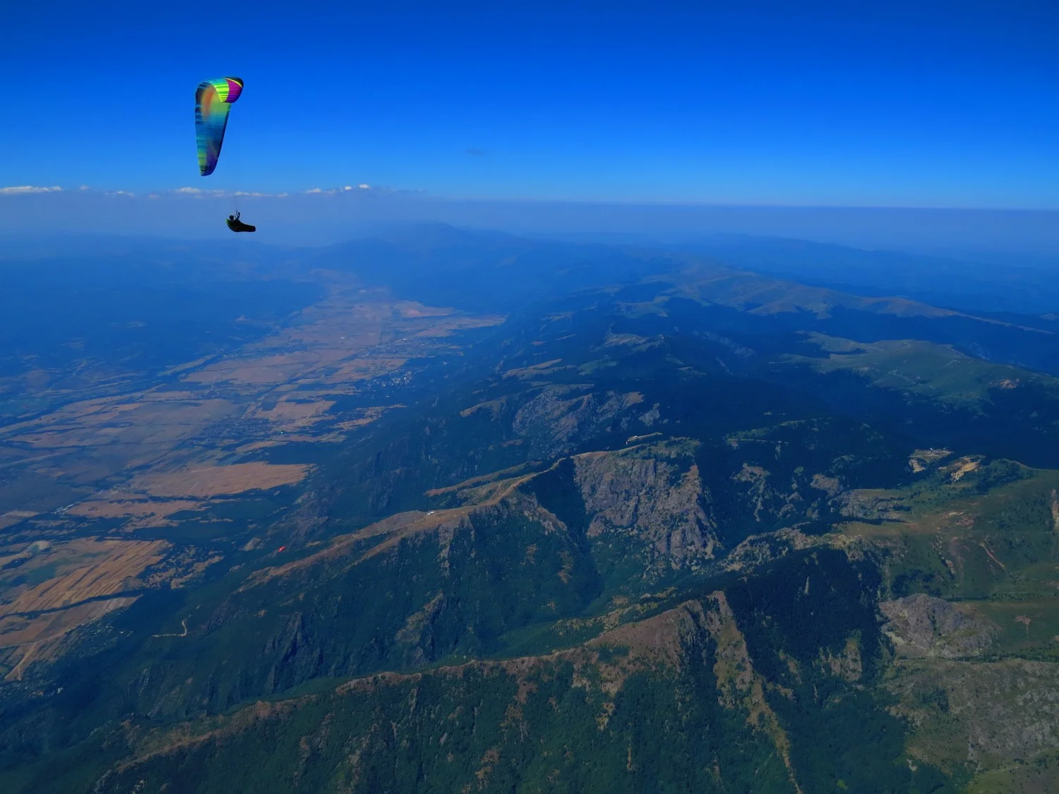 При подходящи условия може да прелетите над връх Ботев, да зърнете хижа Рай, сгушена над Джендема и да видите от друг ъгъл Райското пръскало.