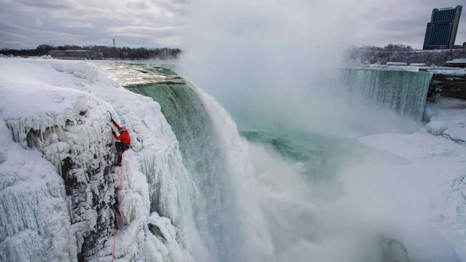 Зимата е доста симпатичен сезон. И за тези, които обичат да спортуват на открито, и за тези, които прекарват времето си на топло с чаша чай в ръка. Следващото видео го доказва. Показва ни, че приключенията не спират с края на лятото. Напротив! В него можем да видим защо мнозина чакат с нетърпение сезона на леда и пудрата. Виждаме също какво е да се катериш по замръзнала част от Ниагарския водопад, а останалата част да тече до теб с пълна сила. Истинска красота!