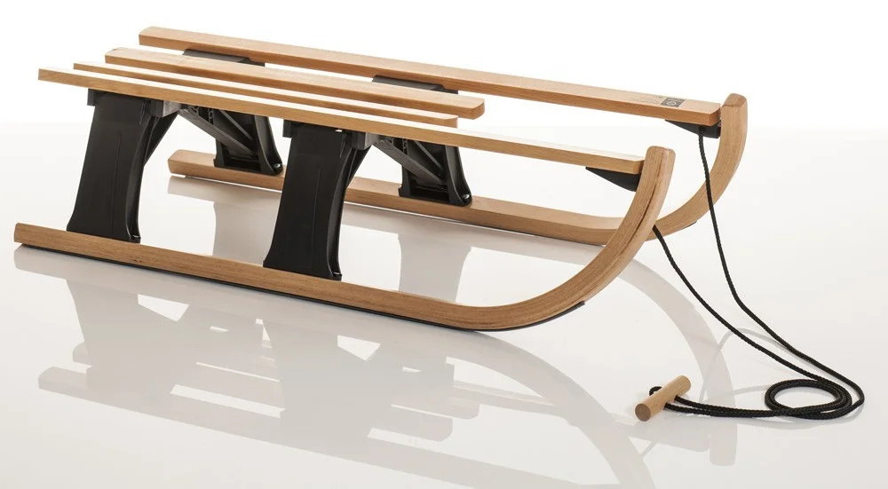 Създателите й залагат на класически модел дървена шейна, който е изработен от висококачествени материали и внимание към всеки един детайл. Основното й предимство е, че може да се сгъва и да се побере във всеки един багажник. А металните й ски осигуряват по-гладко пързаляне. Шейната е предназначена за едно дете. Максималният товар, който може да поеме, е 70 кг.