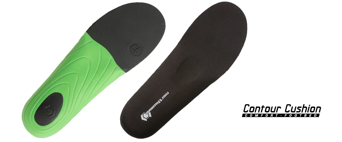 Тази година, Northwave изскачат с изцяло нова стелка в средния и висок клас обувки. Италианците са кръстили произведението си Contour Cushion comfort-footbed и името говори само по себе си. Стелката е с по-нисък профил, позволяващ на петата и крака ви да легнат още по-вътре в самия чорап, създавайки съвършен fit. Точно под петата има много умекотен прозорец, предназначен за големи сътресения при дропове, бабуни и скокове, а пък точно по средата на стелката има лека подутина, предназначена да намали умората при каране. Стелката е създадена от два различни слоя, правейки я още по-удобна от предшественика си.