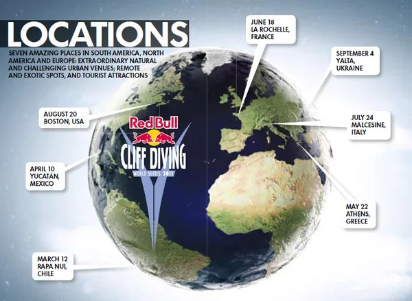Световни серии Red Bull Cliff Diving 2011 – нови участници, уникални места за провеждане на състезанията и изключителни скокове във вода от 27 м височина. Освен това за третото си поредно издание световните серии Red Bull Cliff Diving се появяват с няколко нововъведения.