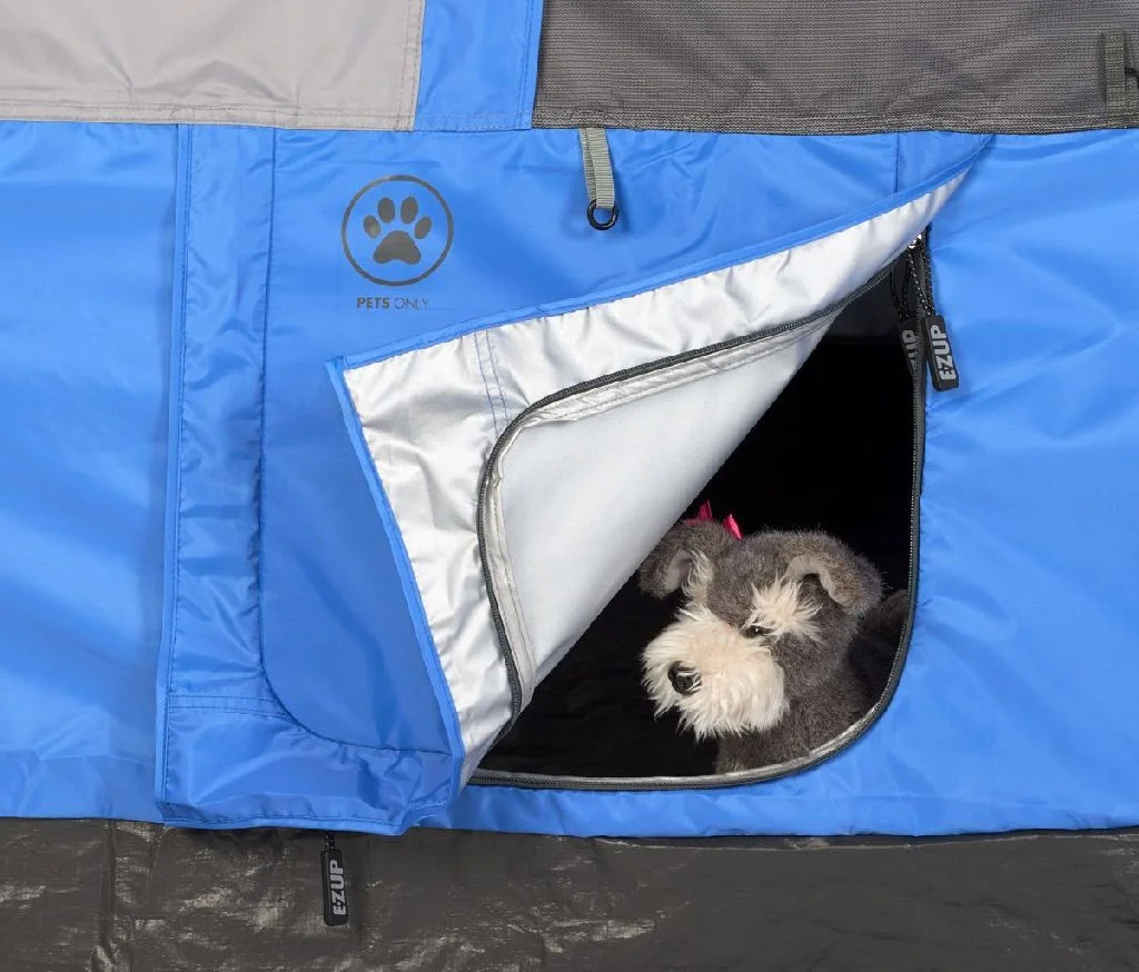 И тъй като сме фенове на къмпингуването не само с приятели, но и с домашни любимци, сме приятно изненадани от факта, че е помислено и за тях. Кубът разполага и с врата, специално за тях, която е с подсилен цип.