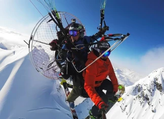 Дроп от парамотор и вълнуващо ски/сноуборд спускане в Аляска във видеото на Ксавие де ла Ру