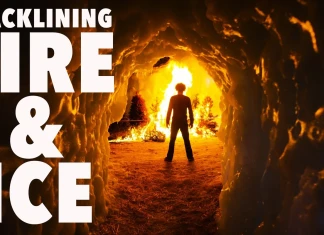 Слаклайн видео с уникални изпълнения сред ледени блокове и горяща лента