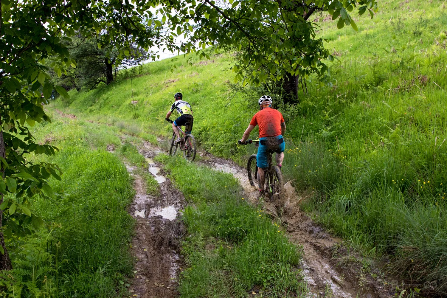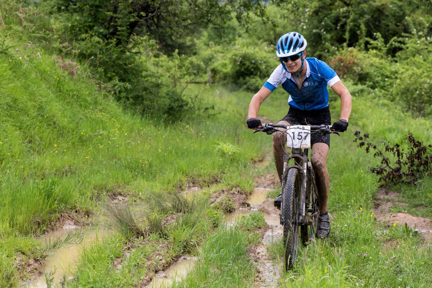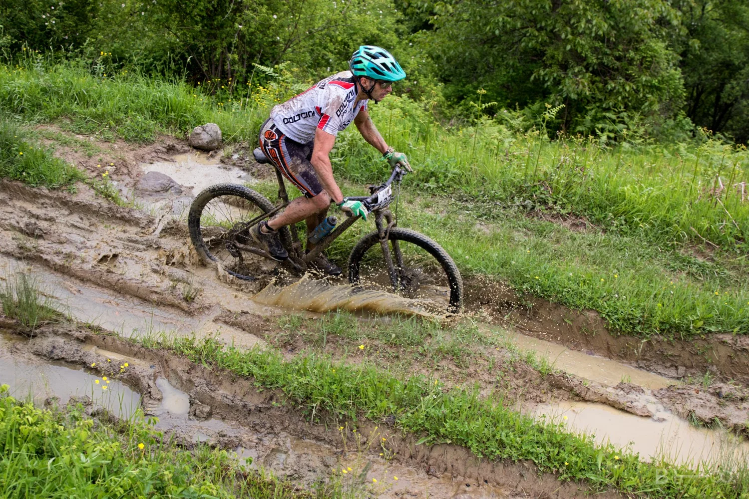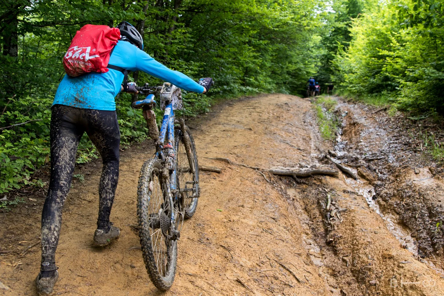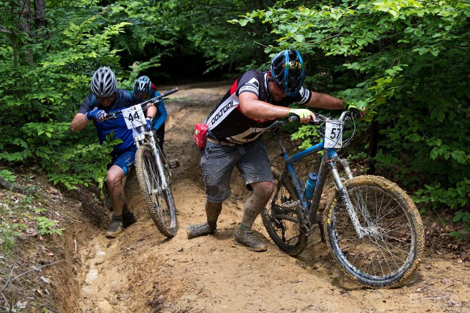 Трасето сега беше повече от предизвикателно заради подгизналите пътеки и дълбоката на места кал.