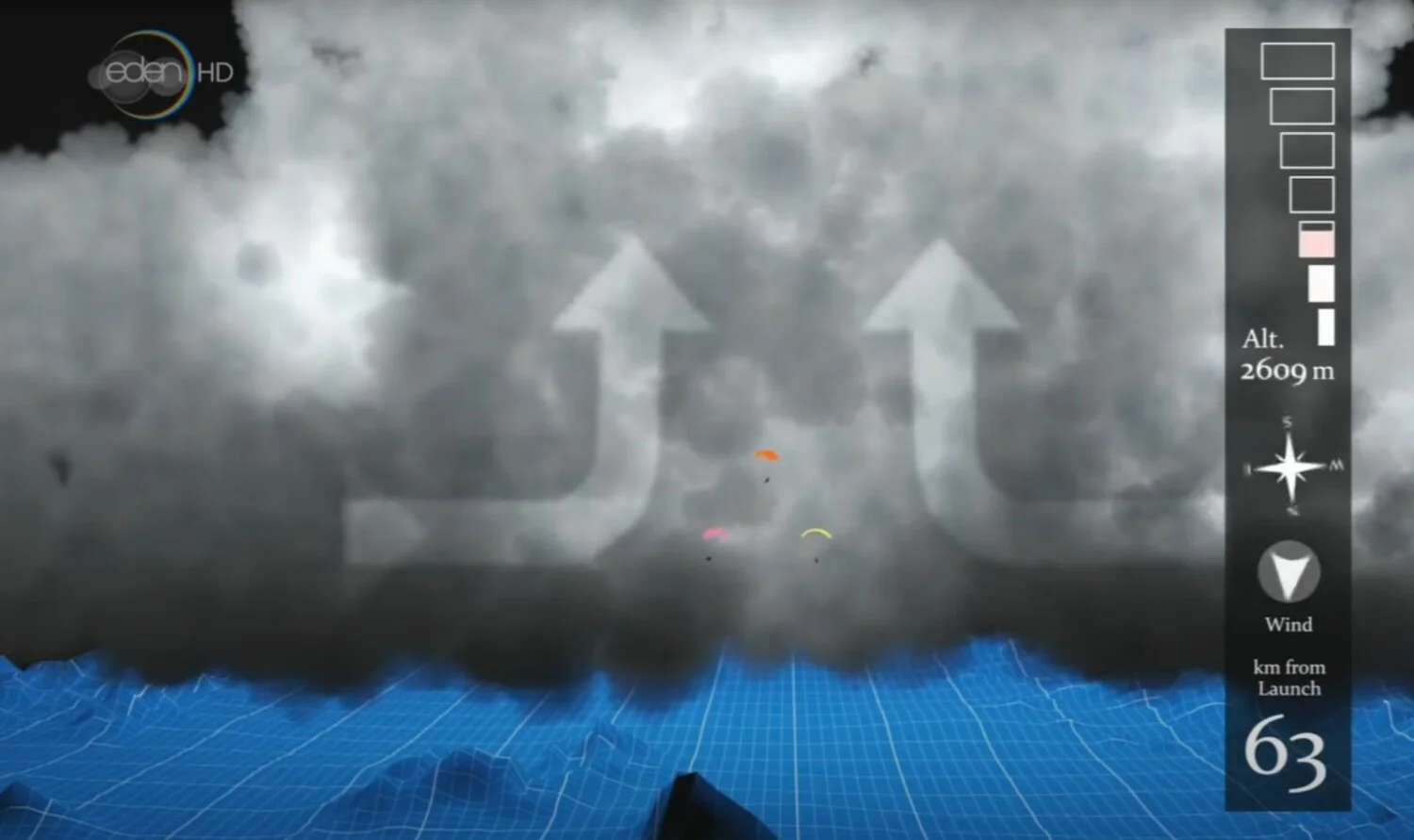 Вътре в купесто-дъждовния облак Ева Вишниерска е привързана към парапланера си и почва да излита нагоре като ракета. Бурята я издига със скорост 20 метра в секунда и тя е напълно безсилна да излезе от аеродинамичния тунел.