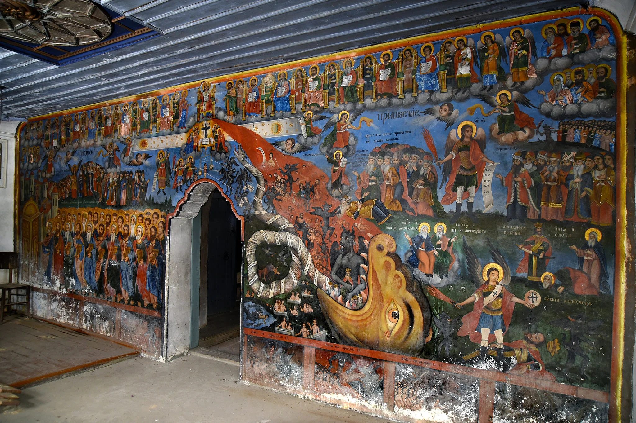 През 1849 г. зографи от Тревненската иконописна школа изографисали иконостаса и цялата притворна стена. През 1871 г. Захари (Цанюв) Зограф, от Трявна, рисува върху куполната част няколко образа в големи формати. Тревненският иконописец твори в дълъг период от време – от 1825 г. до 1879 г.